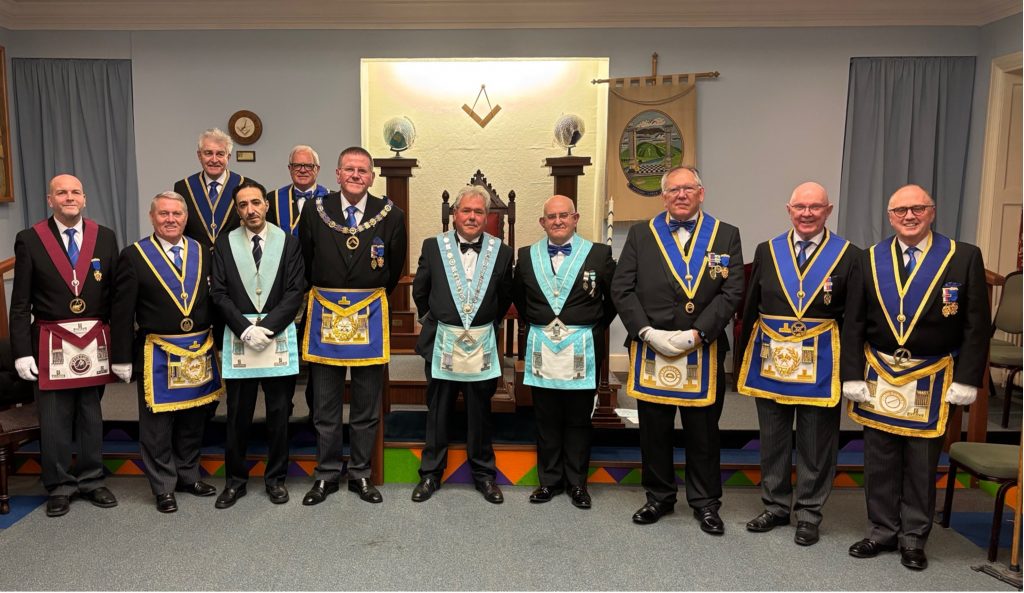 Our Chapter Installation Meeting, held on 9th October 2025, was honoured with the presence of the Deputy Grand Superintendent, E. Comp. David Greig,  who was accompanied by 5 Active Provincial Officers.  Unfortunately our MEZ, E. Comp. Jim Young, was absent due to illness and E. Comp. Kevin Burrows stepped in